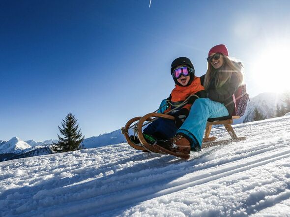Tobogganing is very popular with people of all ages. An insider tip is the Brindlingalm natural toboggan run on Hochschwendberg. From the Möslbahn cable car station on Schwendberg, it goes through idyllic spruce forest to an alpine pasture with panoramic views and, from there, rapidly down into the valley on a toboggan.